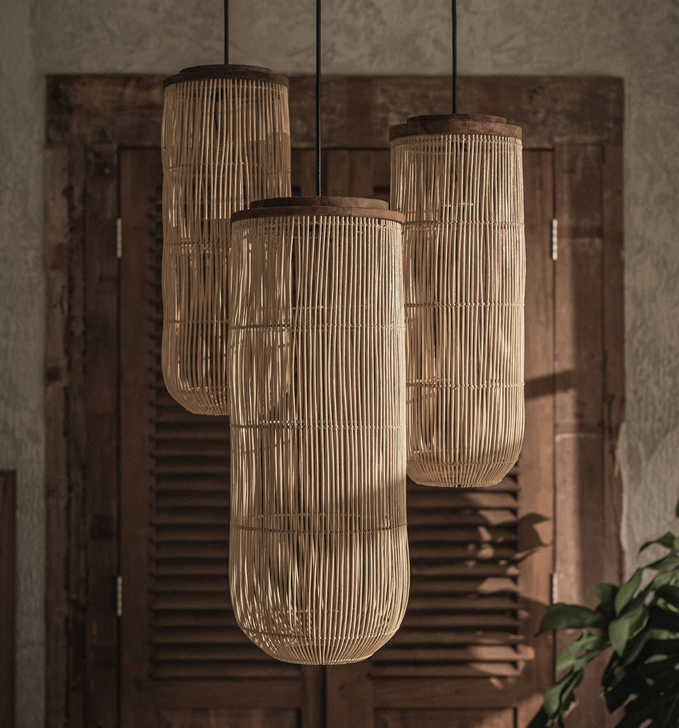 With its beautiful open structure and longer length, the Tube lamp is the biggest statement maker of them all. Made entirely by hand from high quality rattan, finished with a teak top, the pendant provides a beautiful natural light source in the room and makes a true eyecatcher. No matter where you hang it. Available in various sizes.