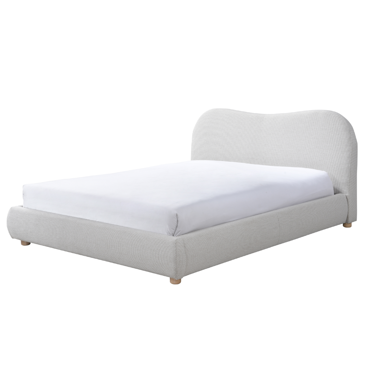 • The Wave Bed features a cosy, curved silhouette upholstered in stylish natural weave fabric. Its neutral colour suits various interior styles while the distinctive, cushioned headboard ensures exceptional comfort. Four sturdy, round wooden legs provide ample support. Designed with durability in mind, the Wave Bed is perfect for residential homes and modern rental flats. It is thoughtfully crafted with responsibly sourced and eco-friendly materials to support sustainable living.